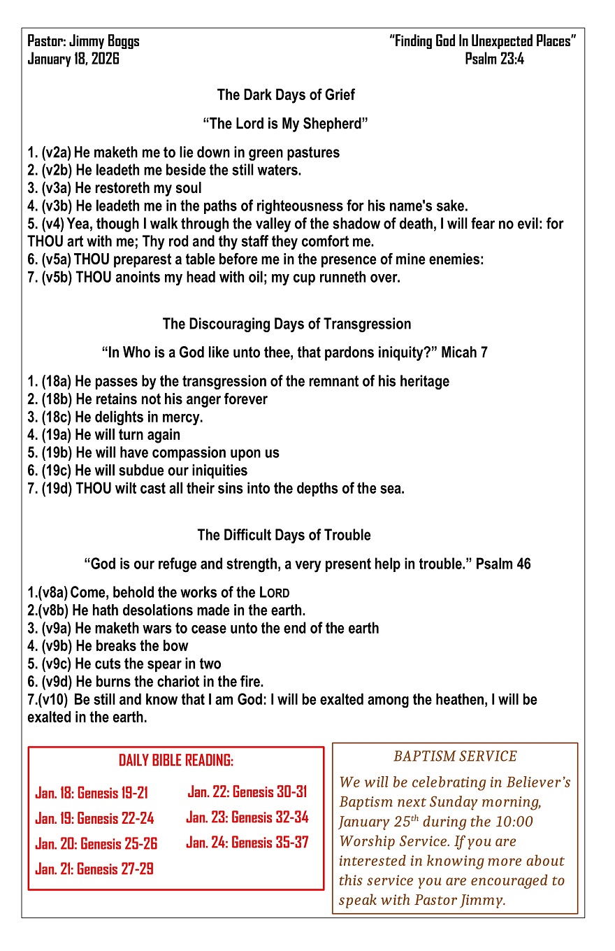 Message for January 17th: “Finding God In Unexpected Places” (Psalm 23:4)