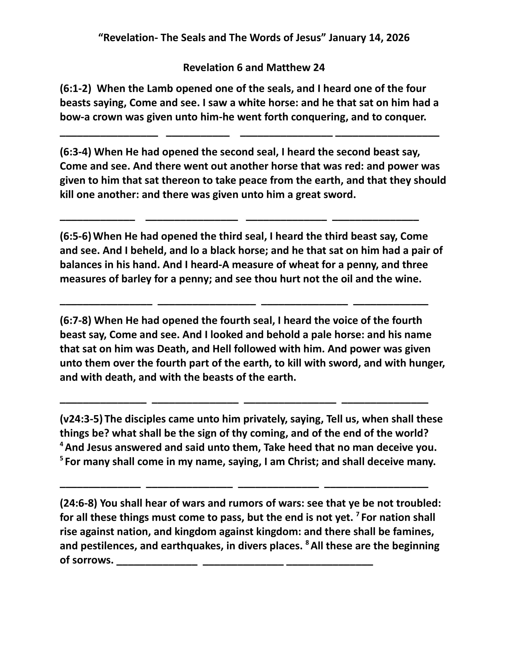 Message for January 14: “Revelation- The Seals and The Words of Jesus”