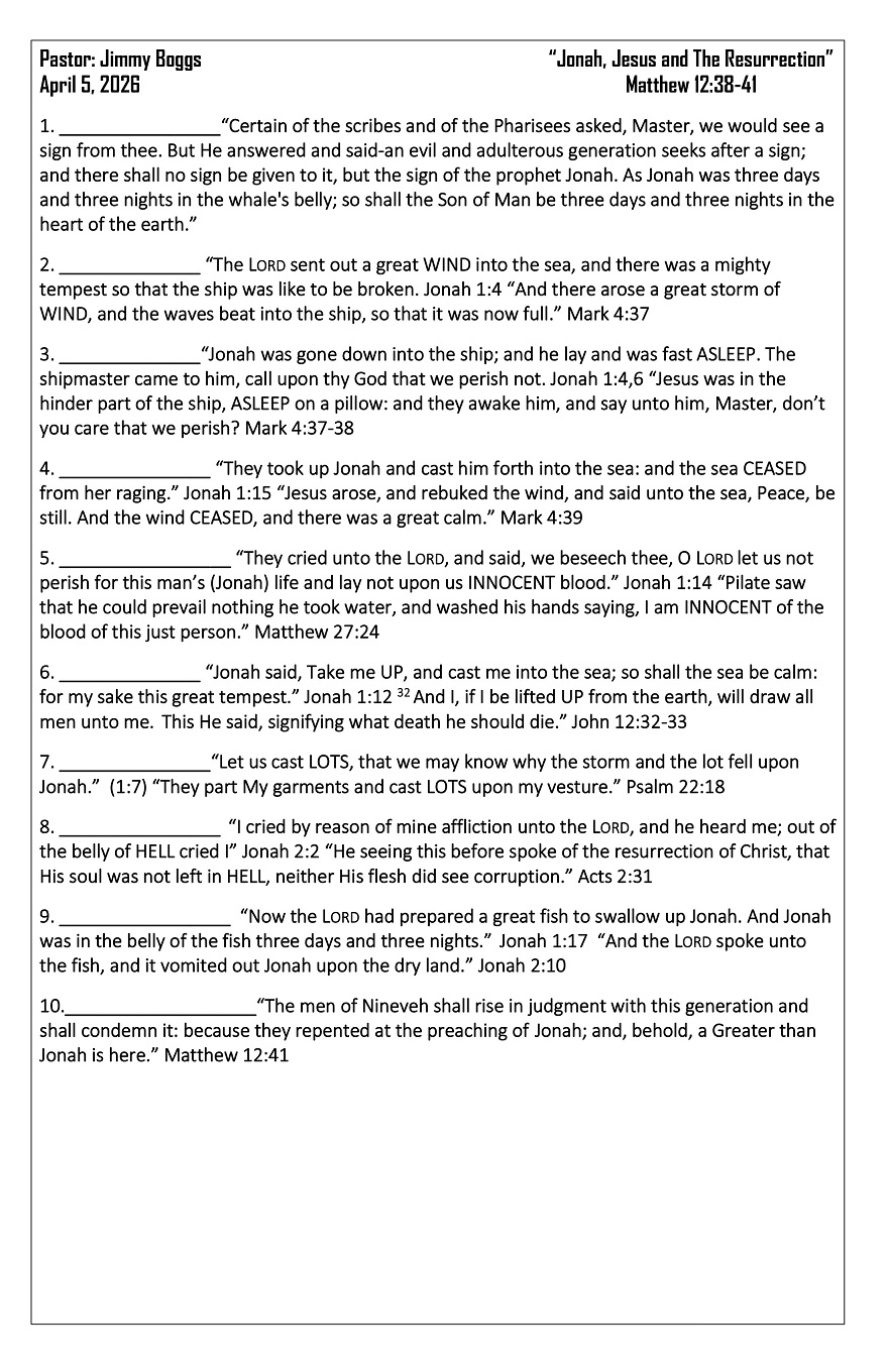 Message for April 5th: “Jonah, Jesus and the Resurrection”