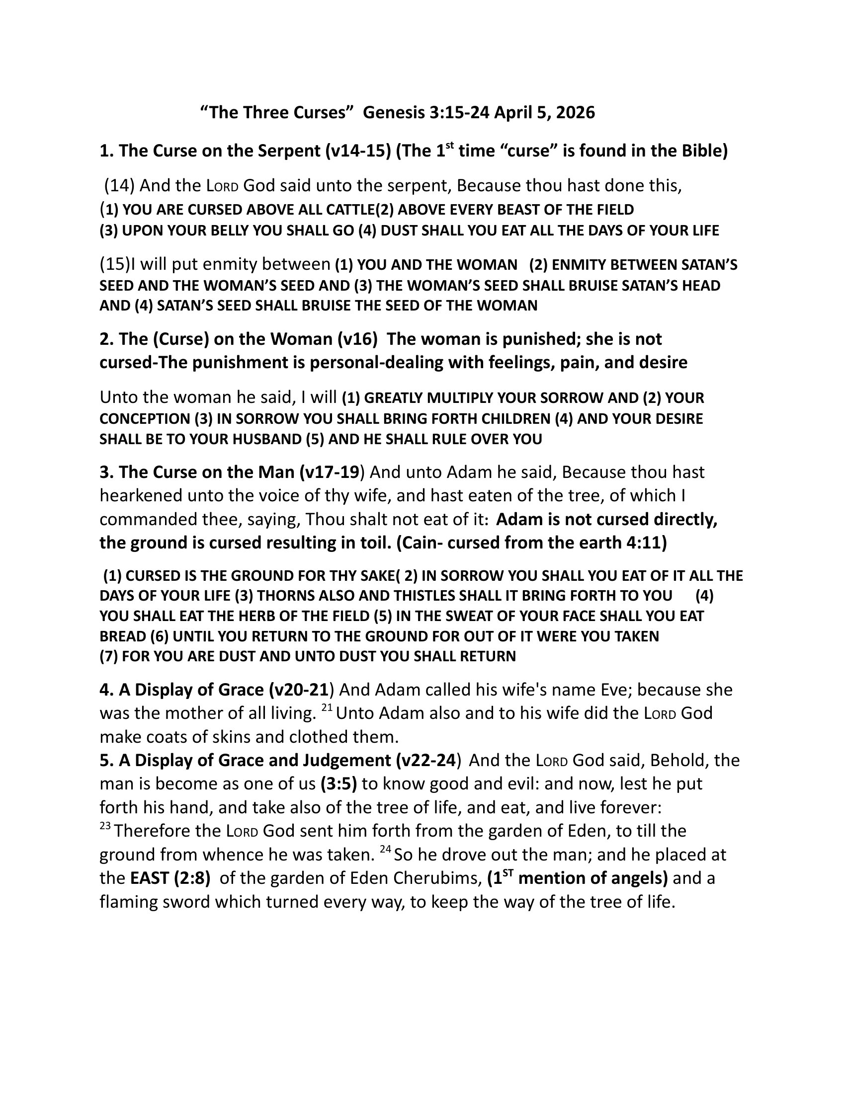 Message for April 5th Facebook Bible Study: “The Three Curses” (Genesis 3:15-24)